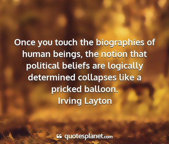 Once you touch the biographies of human beings, the notion that political beliefs are logically determined collapses like a pricked balloon.Irving Layton