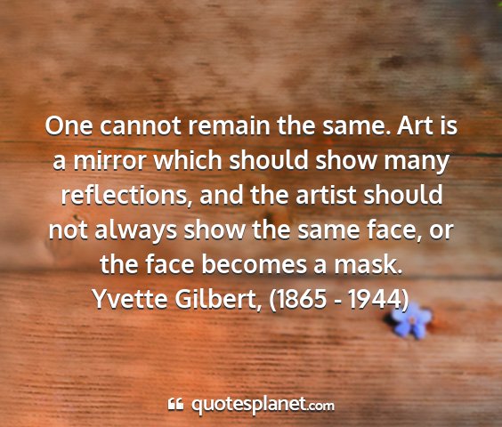 One cannot remain the same. Art is a mirror which should show many reflections, and the artist should not always show the same face, or the face becomes a mask.Yvette Gilbert, (1865 - 1944)