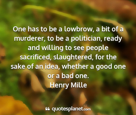 One has to be a lowbrow, a bit of a murderer, to be a politician, ready and willing to see people sacrificed, slaughtered, for the sake of an idea, whether a good one or a bad one.