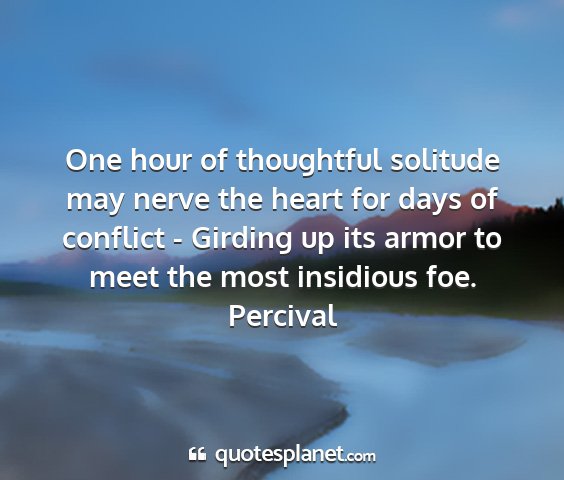 One hour of thoughtful solitude may nerve the heart for days of conflict - Girding up its armor to meet the most insidious foe.Percival
