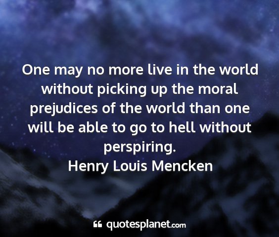 One may no more live in the world without picking up the moral prejudices of the world than one will be able to go to hell without perspiring.Henry Louis Mencken