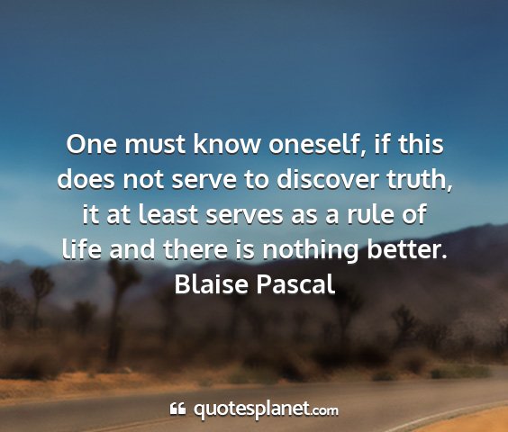 One must know oneself, if this does not serve to discover truth, it at least serves as a rule of life and there is nothing better.Blaise Pascal