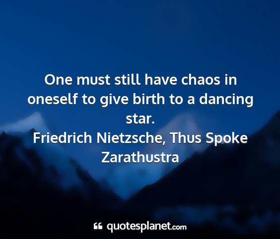 One must still have chaos in oneself to give birth to a dancing star.Friedrich Nietzsche, Thus Spoke Zarathustra
