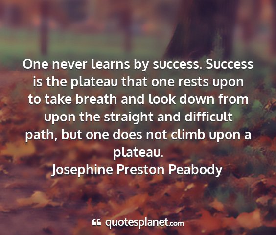 One never learns by success. Success is the plateau that one rests upon to take breath and look down from upon the straight and difficult path, but one does not climb upon a plateau.Josephine Preston Peabody