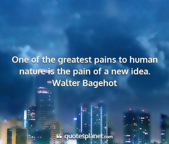 One of the greatest pains to human nature is the pain of a new idea.