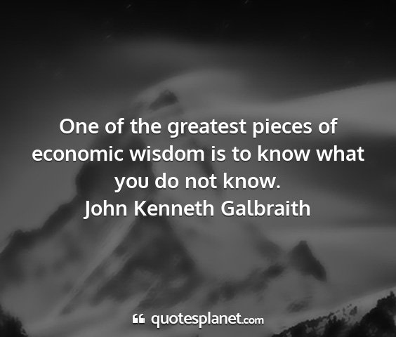 One of the greatest pieces of economic wisdom is to know what you do not know.