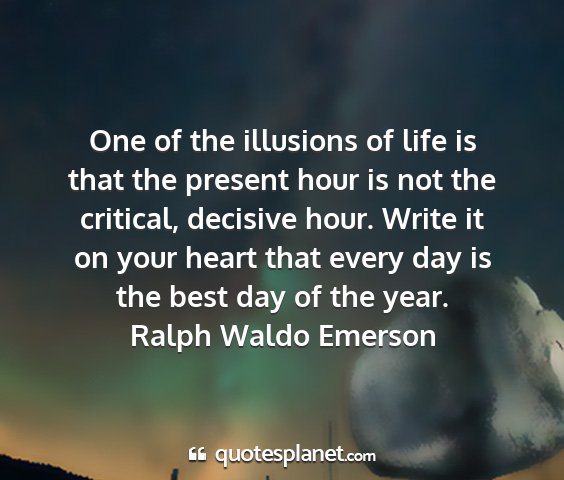 One of the illusions of life is that the present hour is not the critical, decisive hour. Write it on your heart that every day is the best day of the year.Ralph Waldo Emerson