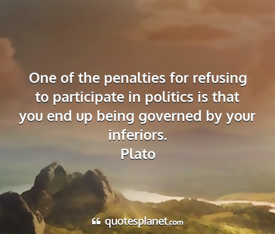 One of the penalties for refusing to participate in politics is that you end up being governed by your inferiors.Plato