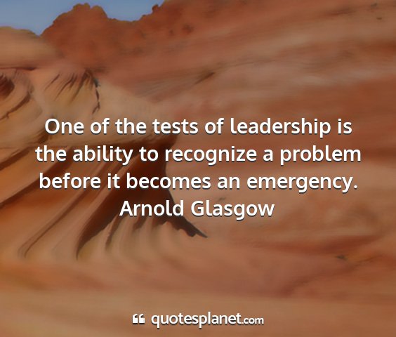 One of the tests of leadership is the ability to recognize a problem before it becomes an emergency.Arnold Glasgow