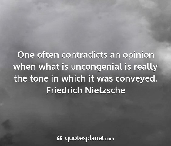 One often contradicts an opinion when what is uncongenial is really the tone in which it was conveyed.Friedrich Nietzsche