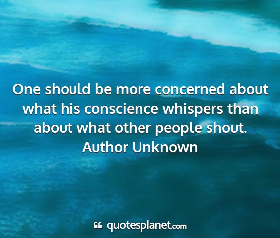 One should be more concerned about what his conscience whispers than about what other people shout.Author Unknown