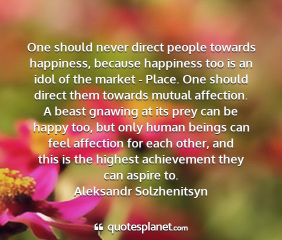 One should never direct people towards happiness, because happiness too is an idol of the market - Place. One should direct them towards mutual affection. A beast gnawing at its prey can be happy too, but only human beings can feel affection for each other, and this is the highest achievement they can aspire to.Aleksandr Solzhenitsyn