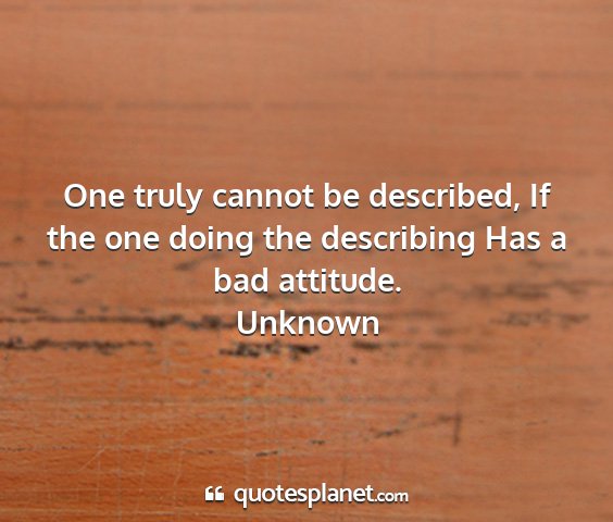 One truly cannot be described, If the one doing the describing Has a bad attitude.