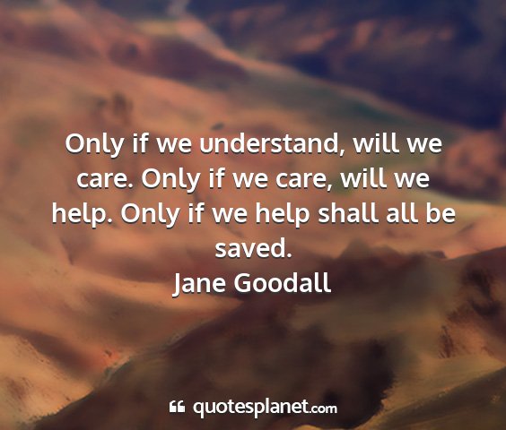 Only if we understand, will we care. Only if we care, will we help. Only if we help shall all be saved.Jane Goodall
