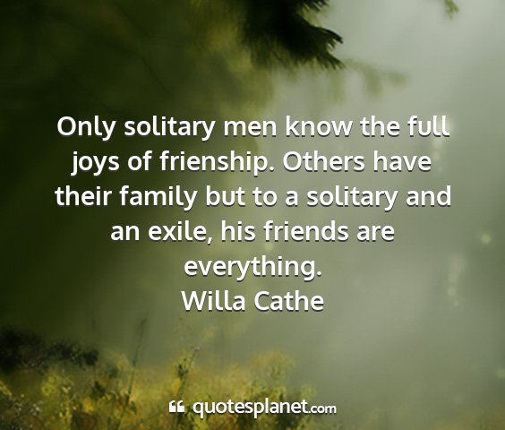 Only solitary men know the full joys of frienship. Others have their family but to a solitary and an exile, his friends are everything.Willa Cathe