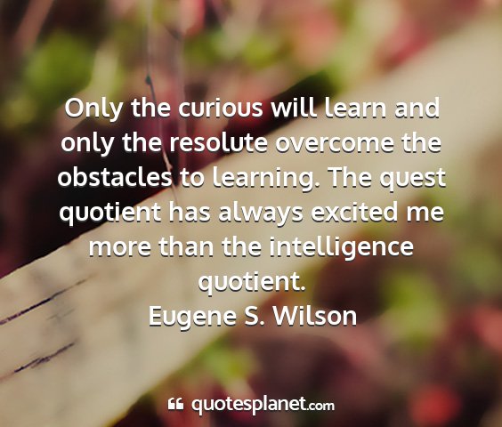 Only the curious will learn and only the resolute overcome the obstacles to learning. The quest quotient has always excited me more than the intelligence quotient.Eugene S. Wilson