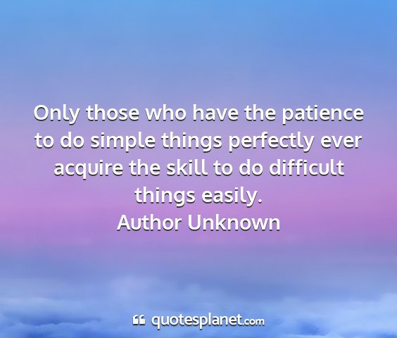 Only those who have the patience to do simple things perfectly ever acquire the skill to do difficult things easily.Author Unknown