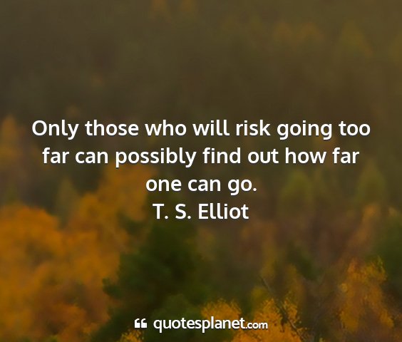 Only those who will risk going too far can possibly find out how far one can go.