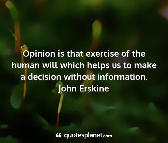 Opinion is that exercise of the human will which helps us to make a decision without information.John Erskine