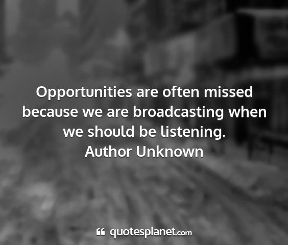 Opportunities are often missed because we are broadcasting when we should be listening.Author Unknown