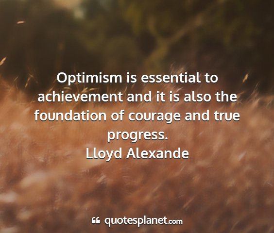 Optimism is essential to achievement and it is also the foundation of courage and true progress.Lloyd Alexande
