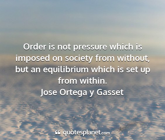 Order is not pressure which is imposed on society from without, but an equilibrium which is set up from within.Jose Ortega y Gasset