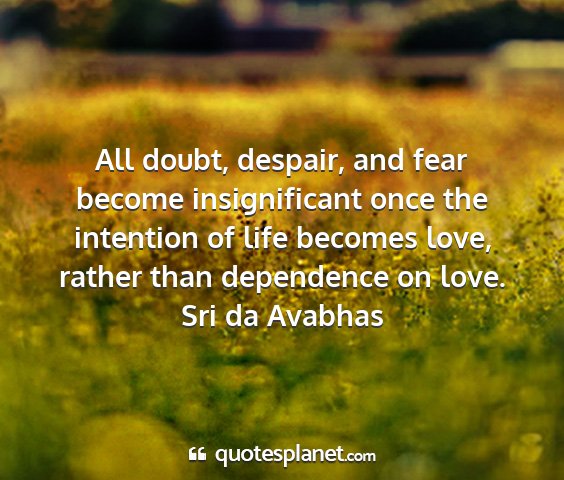 All doubt, despair, and fear become insignificant once the intention of life becomes love, rather than dependence on love.Sri da Avabhas