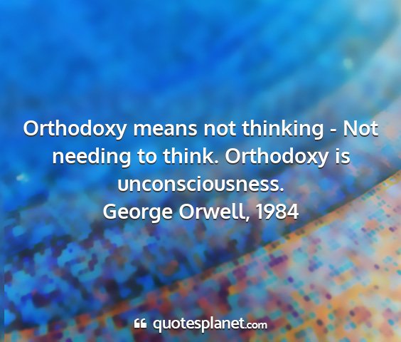Orthodoxy means not thinking - Not needing to think. Orthodoxy is unconsciousness.George Orwell, 1984