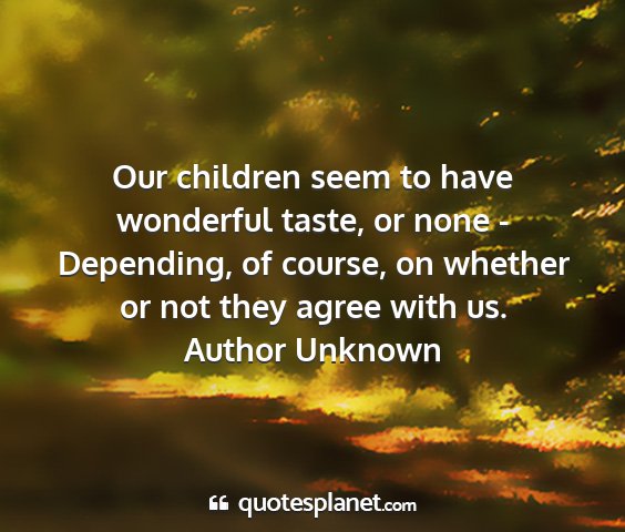 Our children seem to have wonderful taste, or none - Depending, of course, on whether or not they agree with us.Author Unknown