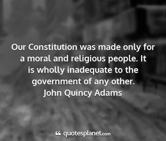 Our Constitution was made only for a moral and religious people. It is wholly inadequate to the government of any other.John Quincy Adams