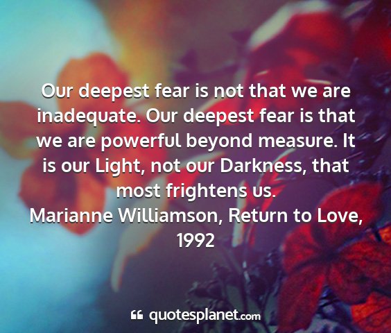 Marianne williamson, return to love, 1992 - our deepest fear is not that we are inadequate....