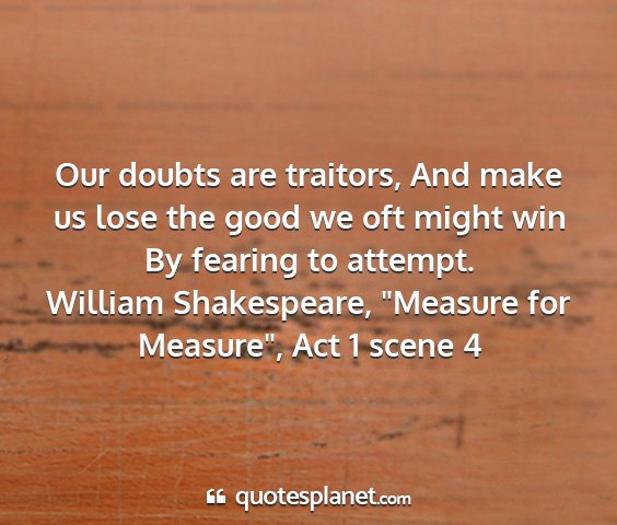 Our doubts are traitors, And make us lose the good we oft might win By fearing to attempt.William Shakespeare, "Measure for Measure", Act 1 scene 4