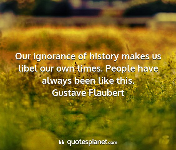 Our ignorance of history makes us libel our own times. People have always been like this.Gustave Flaubert