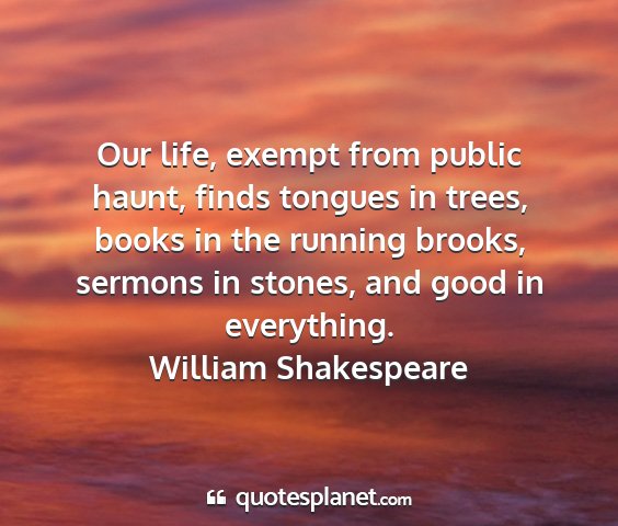 Our life, exempt from public haunt, finds tongues in trees, books in the running brooks, sermons in stones, and good in everything.William Shakespeare