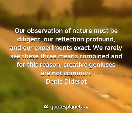 Our observation of nature must be diligent, our reflection profound, and our experiments exact. We rarely see these three means combined and for this reason, creative geniuses are not common.Denis Diderot