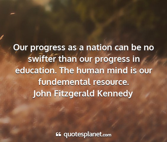 Our progress as a nation can be no swifter than our progress in education. The human mind is our fundemental resource.John Fitzgerald Kennedy