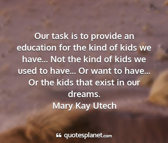 Our task is to provide an education for the kind of kids we have... Not the kind of kids we used to have... Or want to have... Or the kids that exist in our dreams.Mary Kay Utech