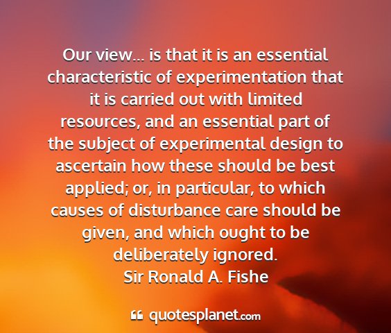 Our view... is that it is an essential characteristic of experimentation that it is carried out with limited resources, and an essential part of the subject of experimental design to ascertain how these should be best applied; or, in particular, to which causes of disturbance care should be given, and which ought to be deliberately ignored.Sir Ronald A. Fishe