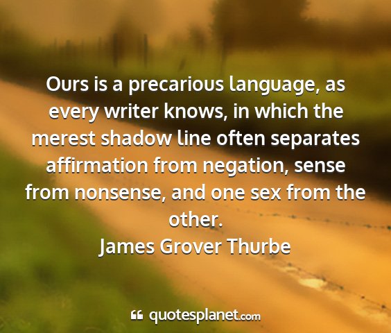 Ours is a precarious language, as every writer knows, in which the merest shadow line often separates affirmation from negation, sense from nonsense, and one sex from the other.James Grover Thurbe