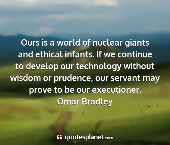 Ours is a world of nuclear giants and ethical infants. If we continue to develop our technology without wisdom or prudence, our servant may prove to be our executioner.Omar Bradley