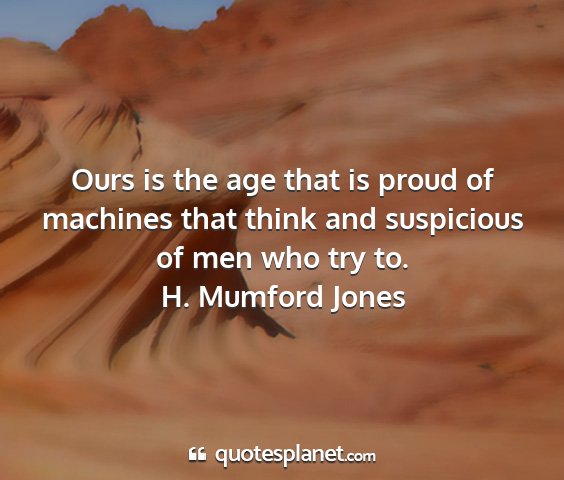 Ours is the age that is proud of machines that think and suspicious of men who try to.H. Mumford Jones