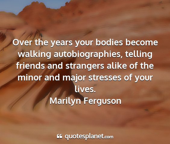 Over the years your bodies become walking autobiographies, telling friends and strangers alike of the minor and major stresses of your lives.Marilyn Ferguson