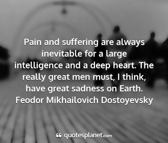 Pain and suffering are always inevitable for a large intelligence and a deep heart. The really great men must, I think, have great sadness on Earth.Feodor Mikhailovich Dostoyevsky