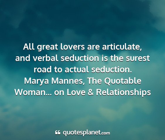 All great lovers are articulate, and verbal seduction is the surest road to actual seduction.Marya Mannes, The Quotable Woman... on Love & Relationships