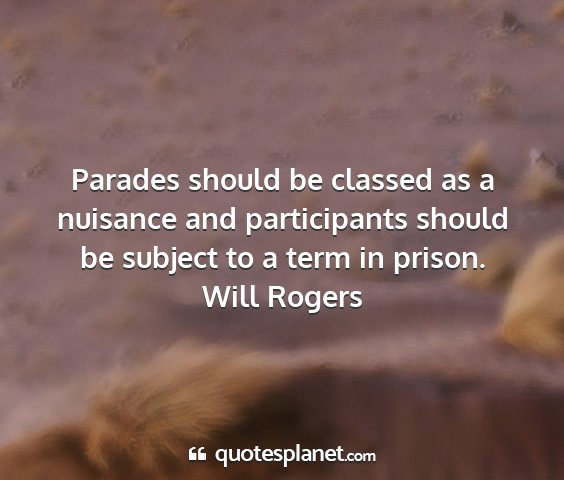 Parades should be classed as a nuisance and participants should be subject to a term in prison.Will Rogers