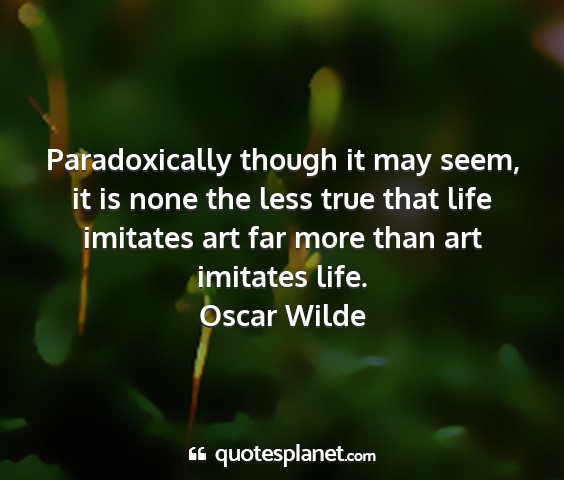 Paradoxically though it may seem, it is none the less true that life imitates art far more than art imitates life.Oscar Wilde