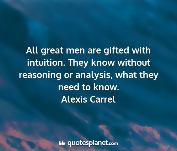 All great men are gifted with intuition. They know without reasoning or analysis, what they need to know.Alexis Carrel