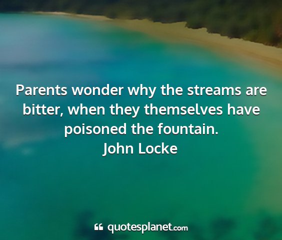 Parents wonder why the streams are bitter, when they themselves have poisoned the fountain.John Locke