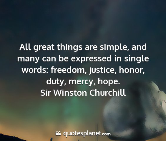 All great things are simple, and many can be expressed in single words: freedom, justice, honor, duty, mercy, hope.Sir Winston Churchill