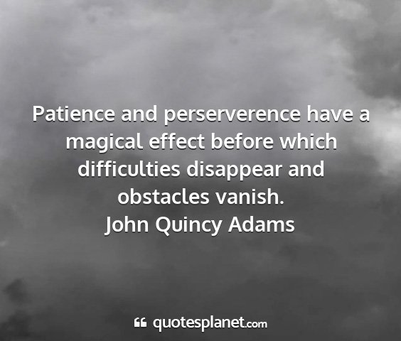 Patience and perserverence have a magical effect before which difficulties disappear and obstacles vanish.John Quincy Adams
